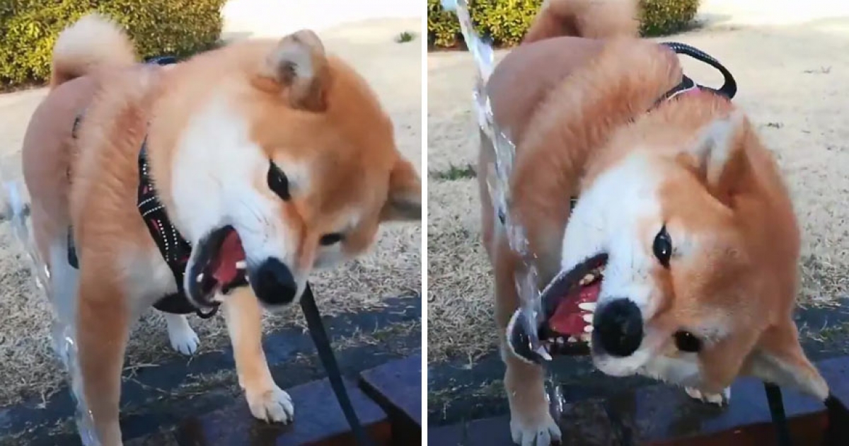 誰設的結界? 柴柴喝水「永遠差一點點」 牠張大嘴巴喝空氣:口還是好渴QQ
