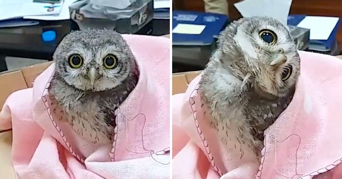 小貓頭鷹掉落巢穴! 醒來竟「身處辦公室」超Q歪頭萌問:叔叔阿姨你們素隨~