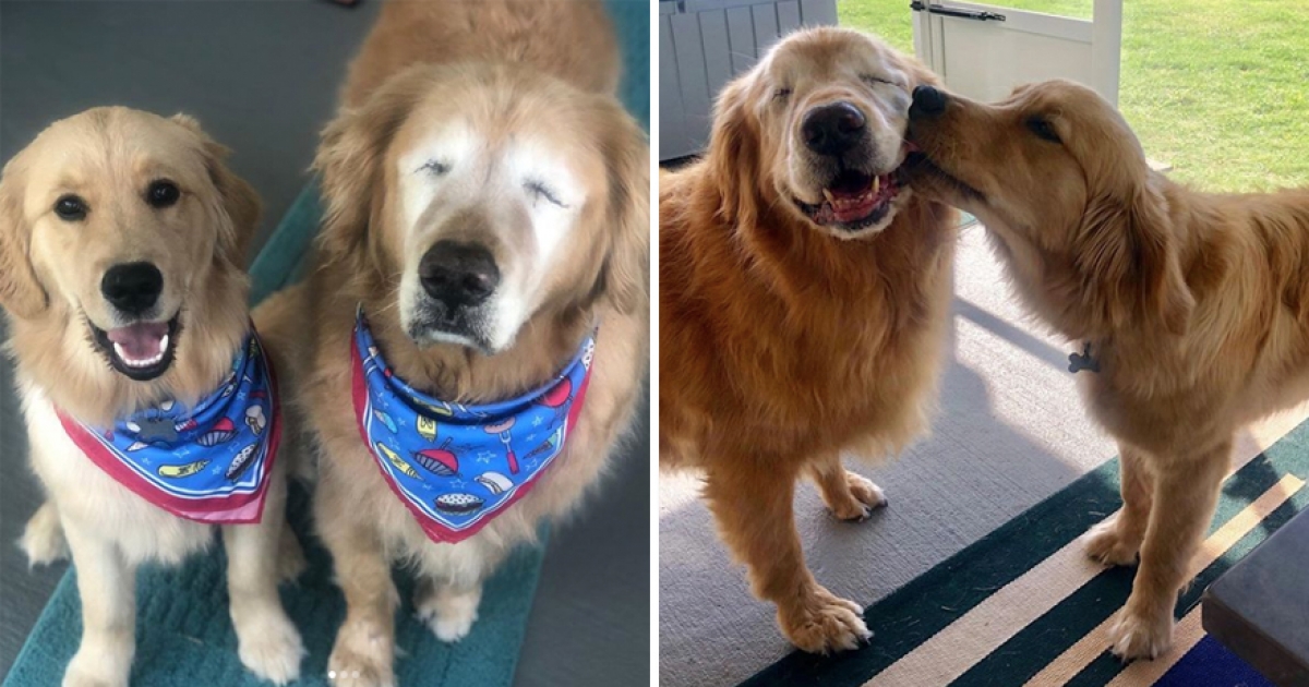 老服務犬看不見…小黃金自願當小助手 「陪散步、撿玩具」網友全暖到
