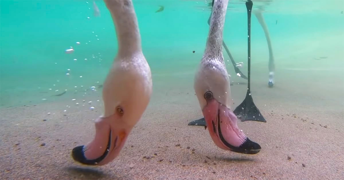 倒頭栽?動物園釋出罕見畫面「紅鶴覓食」 網:看到脖子好痠