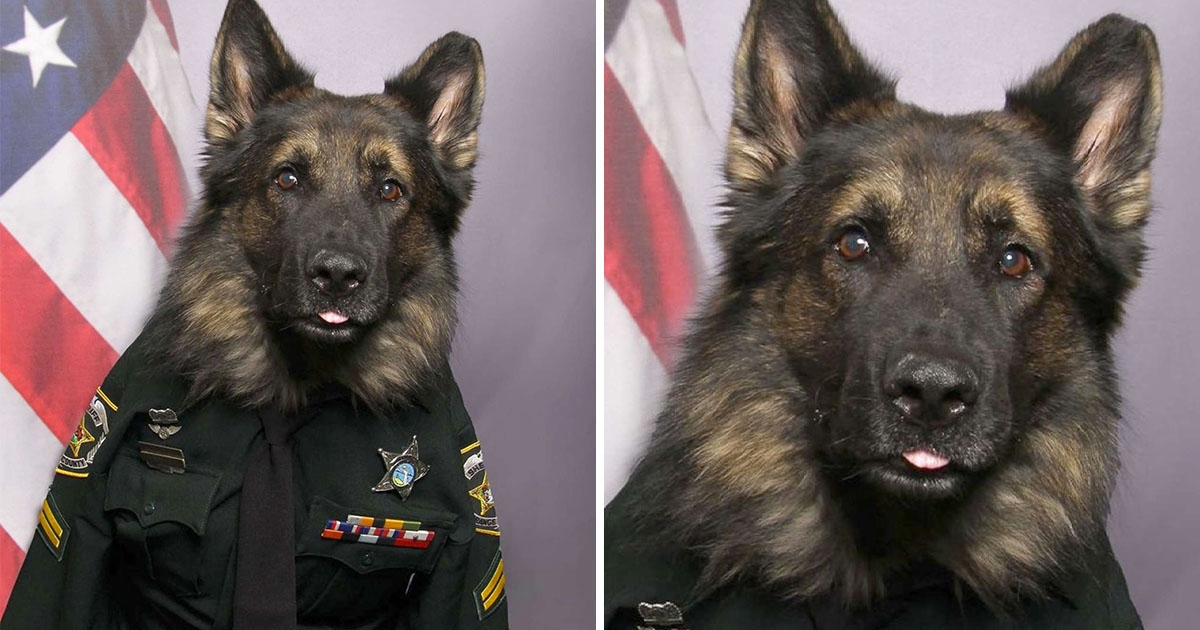 上班囉!K9警犬穿上「全套制服」拍證件照 帥臉脫制服秒萌化:我有棒棒嗎~