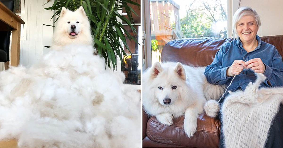 蓬鬆小薩超會掉毛!阿姨乾脆拿來「紡成毛衣」 毛帽、熊熊、羽絨被都是牠們做的~