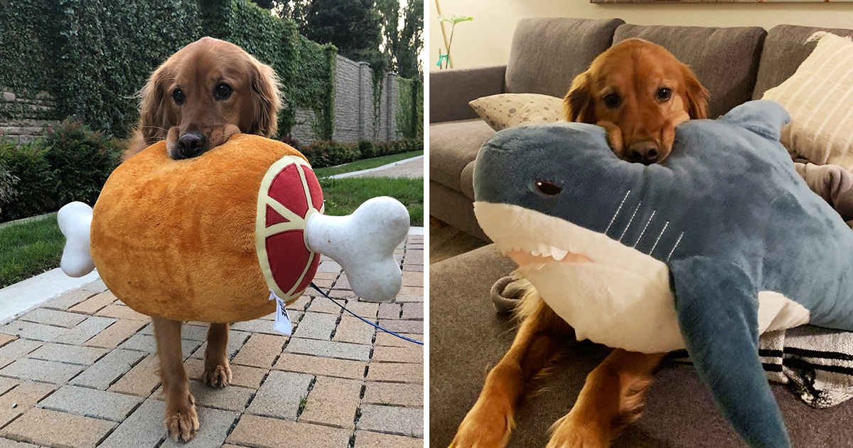 今天是你陪我~ 可愛金每天「叼不同娃娃」陪出門 曬家中娃娃山:都是我寶貝❤️