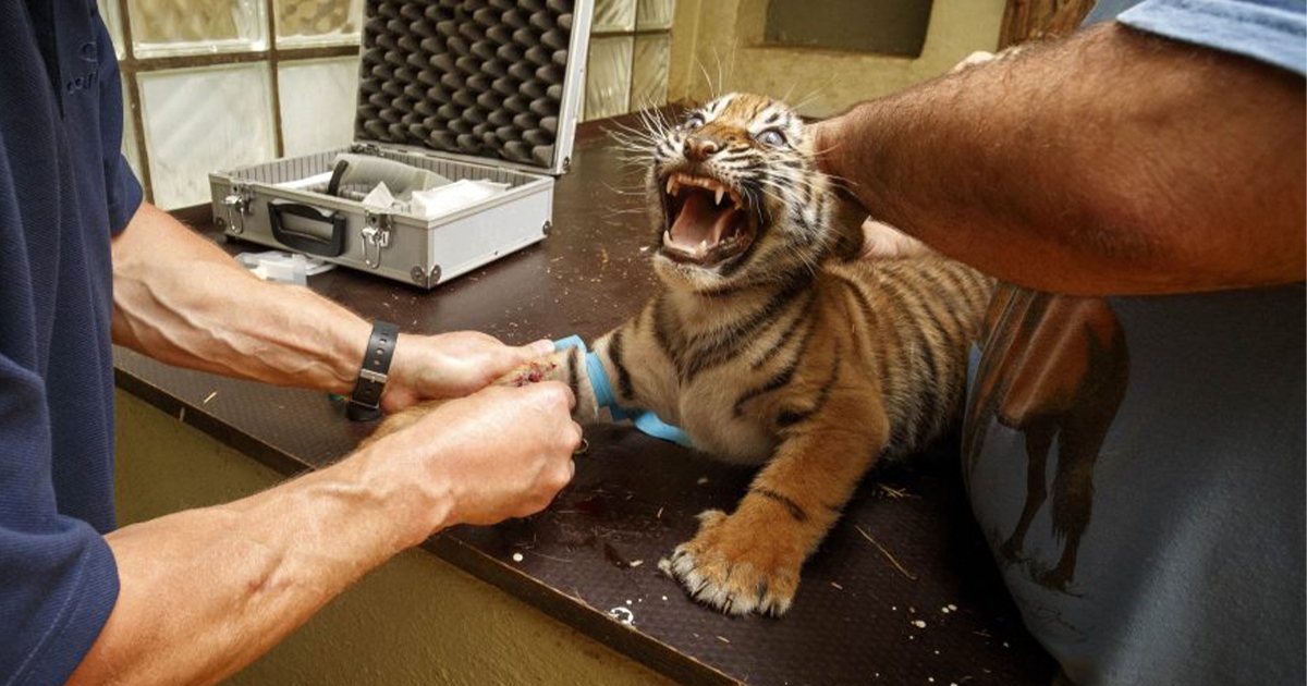 泥不要過來啊! 小老虎打針嚇到「用臉全力裝兇」:我、我要告訴我馬麻惹