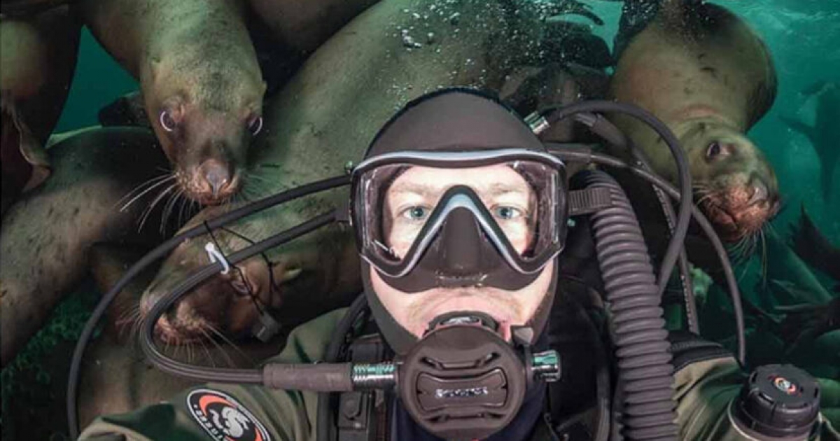 潛水員水中攝影「整群海獅擠背後合照」 眾人失笑:你是遇到小狗?
