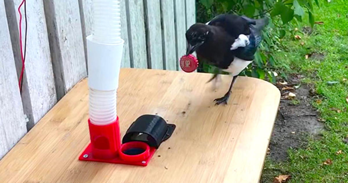 把野生小鳥變成狗了!工程男製「垃圾換食物器」 牠每天開心報到:領點心囉~