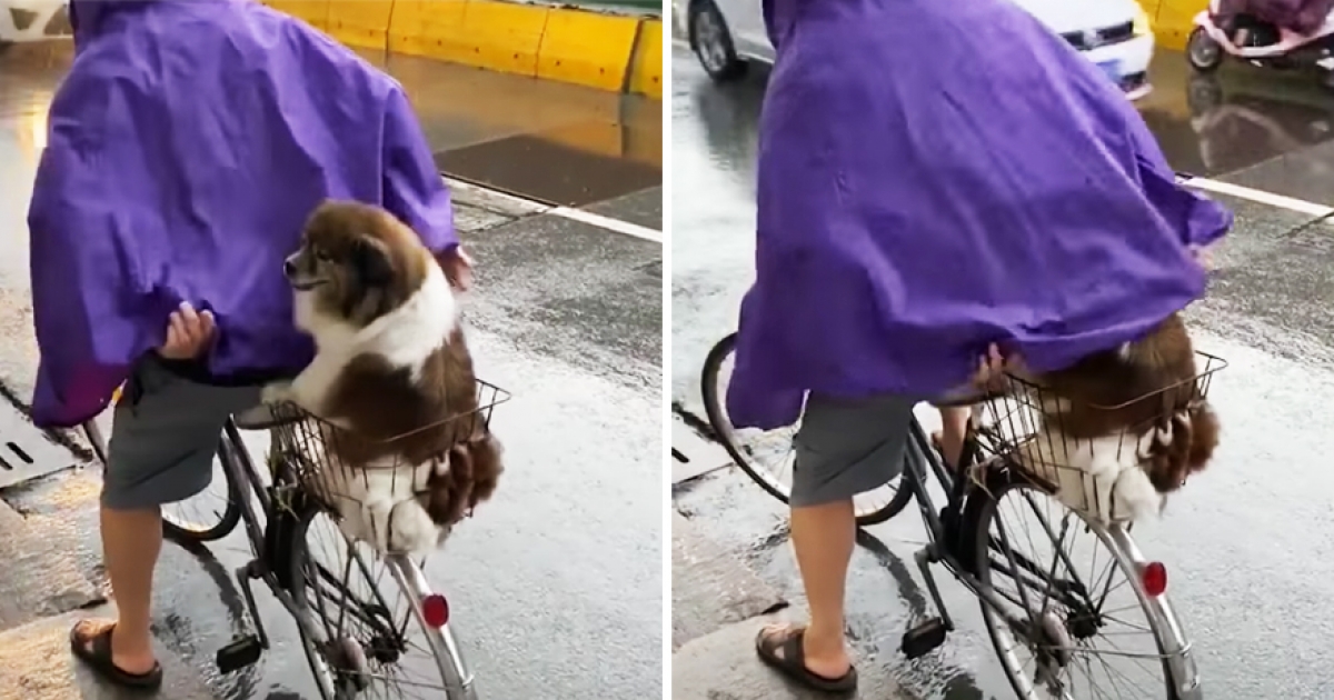 這才是金孫!下大雨阿公「載汪汪回家」 拉雨衣護住:寶貝不能感冒~
