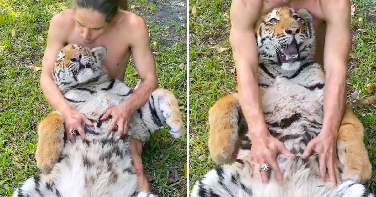 「現實版泰山」抱老虎狂擼! 牠爽成家貓:繼續不要停~