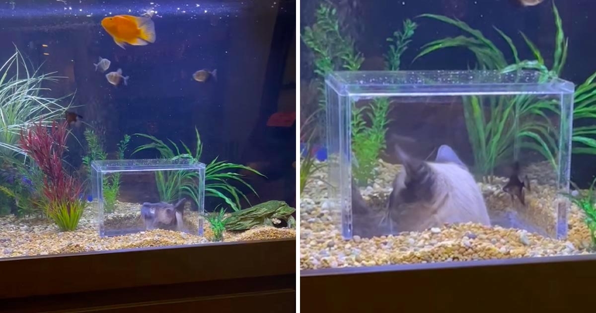 奴才有夠寵!特製水族箱體驗「沈浸式摸魚」 喵皇眼睛發亮:好好玩~