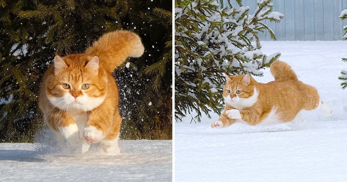 沒有愧對牠顏色!肥美大橘超愛玩雪 萌照獲讚:靈活的小胖子❤️