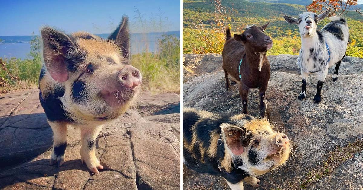 就讀動物學校!三花小豬「最愛去遠足」 相揪狗狗山羊好夥伴:爬山真酥湖~