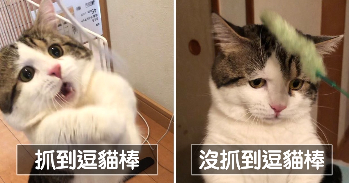 抓到逗貓棒一臉威風! 喵星人失手「瞬間哀怨」喵生無望 最萌表情差融化網友:反差也太大♡