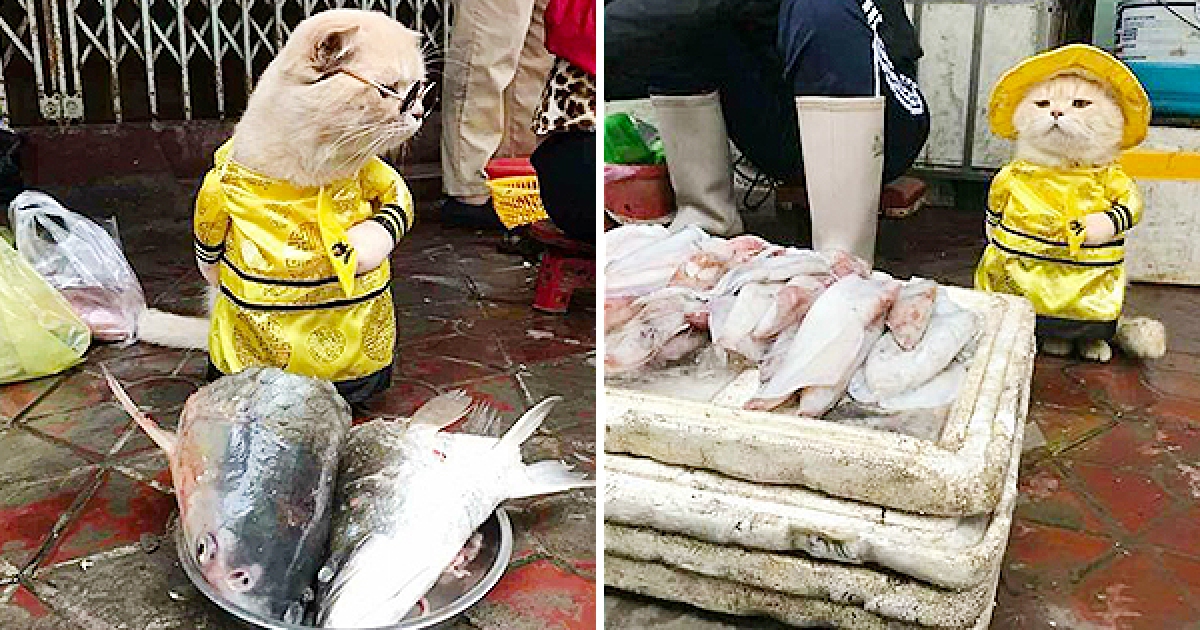 「你!給朕過來買魚!」 貓皇到菜市場擺攤超吸客