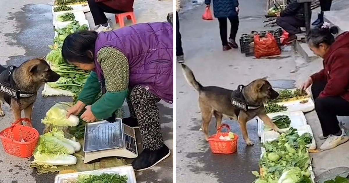 貼心汪叼菜籃逛菜市場!「出手挑菜」有模有樣 網笑:只差開口喊價了
