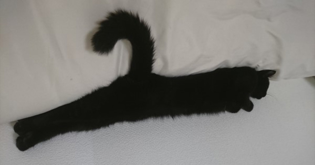 嗯,床上怎麼有衣架? 主人近看「超強偽裝術」笑噴:是間諜貓!