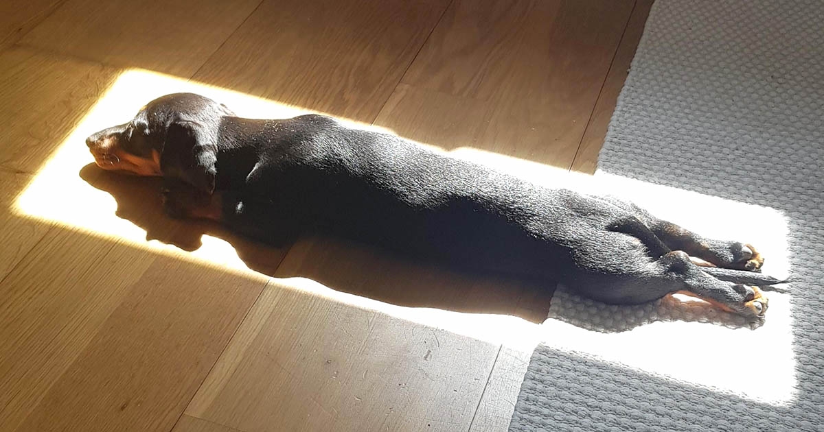 最愛曬日頭啦!小奶汪為追逐陽光「標準立正睡」 網笑翻:不用買狗床了~