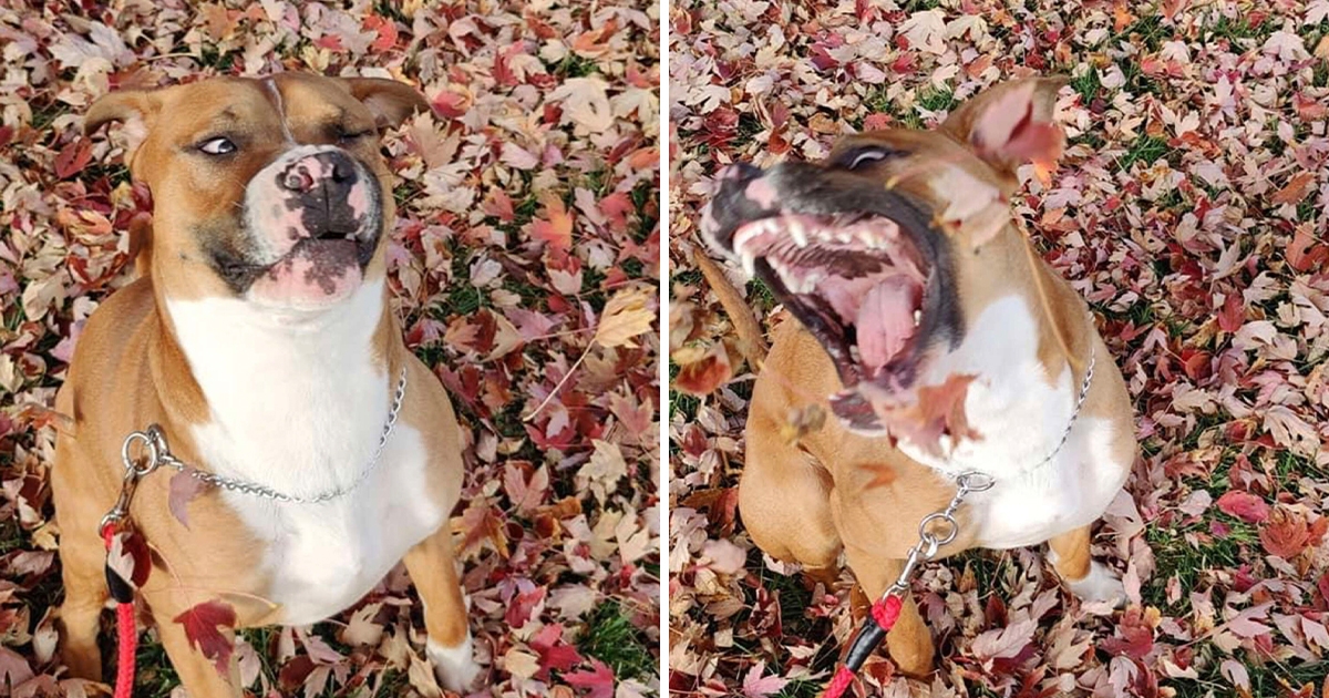好像誤會了什麼… 想幫狗狗拍「唯美落葉照」 牠表情超鬧:交給我!