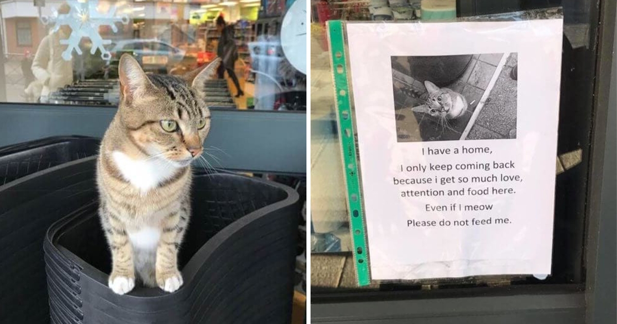 專業詐欺犯!萌貓「假扮浪浪」在超市討罐罐 主人無奈貼公告:牠裝的!