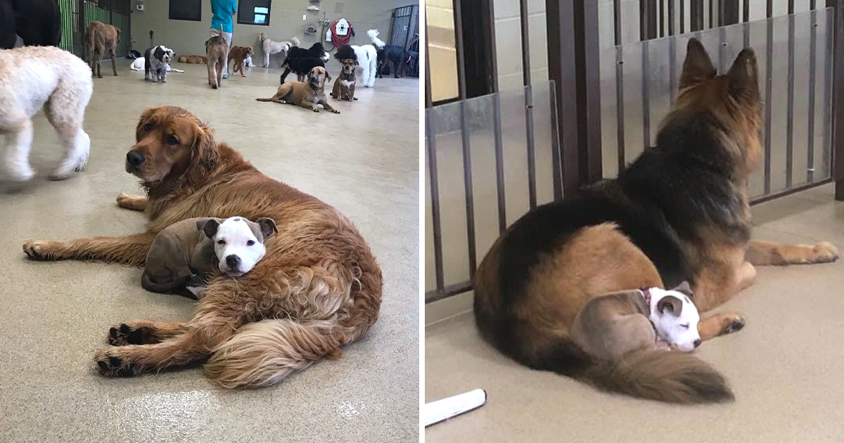 好像誤會了什麼… 小汪汪在日托玩到累 必挑「最鬆軟大狗」躺平:把牠當床墊♡