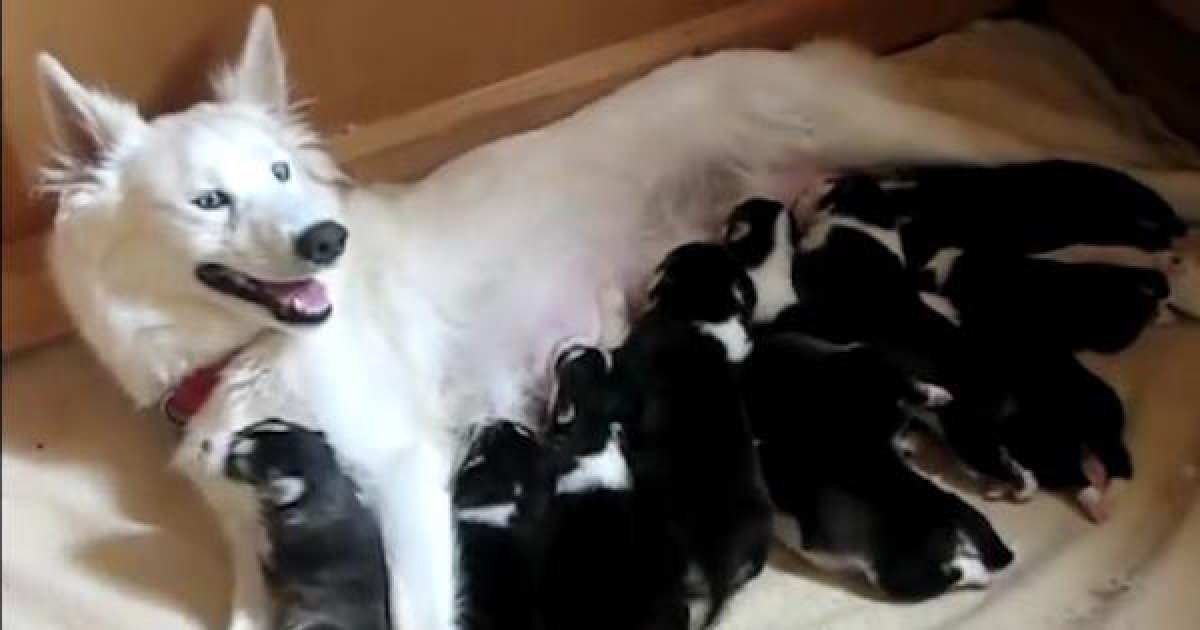 純白哈士奇生下「一窩黑寶寶」 鏡頭一轉把拔很驕傲:都我的種