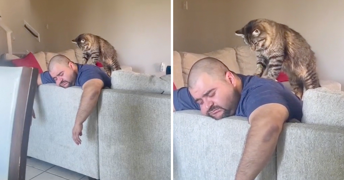 孝順ㄟ貓!為爸爸提供「肉球馬殺雞」 滿臉舒爽羨煞網友:太寵你了吧!
