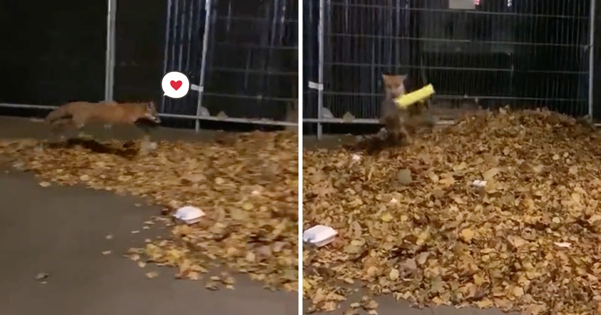 狐狸的快樂就是那麼簡單~ 小狐狸發現落葉「一秒變狗」鏟來鏟去:下雪囉♡