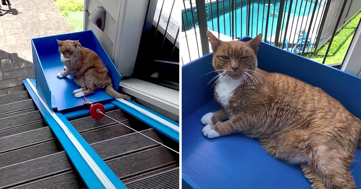 20歲老橘爬不了樓梯!主人特製「專用電梯」 牠搭乘困惑:我怎麼上來了?