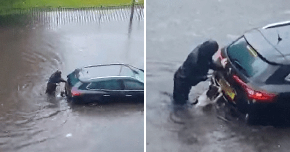 汽車淹水拋錨!暖心女路過幫推 旁邊冒出「可愛小腦袋瓜」:我也來助一臂之力!