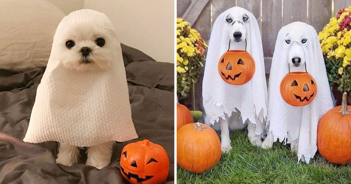 0成本幫愛犬完成最萌萬聖節造型 「一張餐巾紙變白幽靈」全網笑喊太可愛