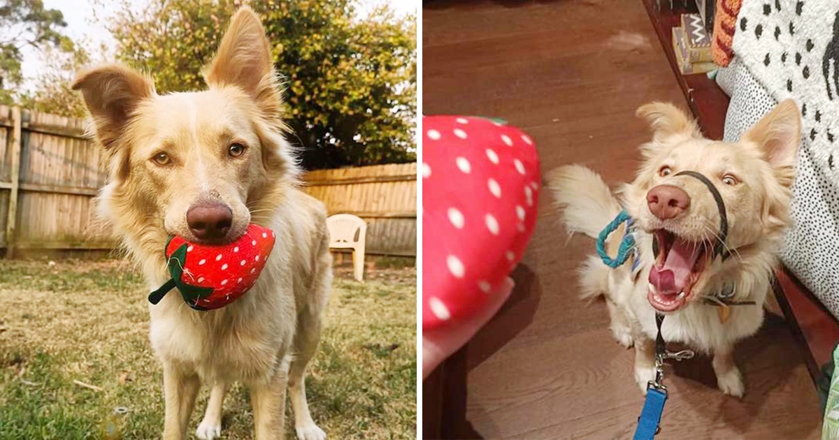 最愛「草莓玩具停產」服務犬超鬱卒 暖心店家聯絡「送2個」狗狗開箱嗨翻:這些都是給我的?