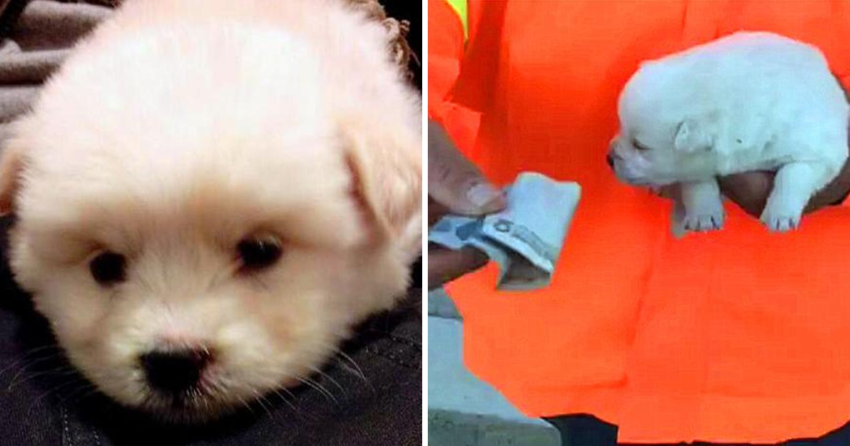 撿到「雪白小奶汪」沒辦法養 好心清潔大叔「掏紙鈔求路人」:拜託收養牠!