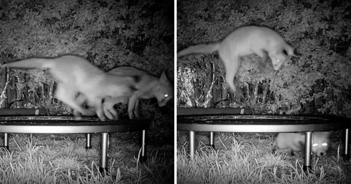 小狐狸們半夜闖進後院! 「只為玩彈跳床」好奇跳高高:ㄉㄨㄞ腰腰~