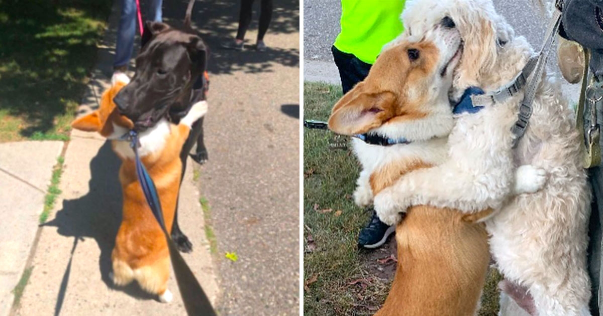 柯基好熱情!愛交朋友「看到狗狗就要抱抱」 小短腿緊摟:好高興看到你❤️