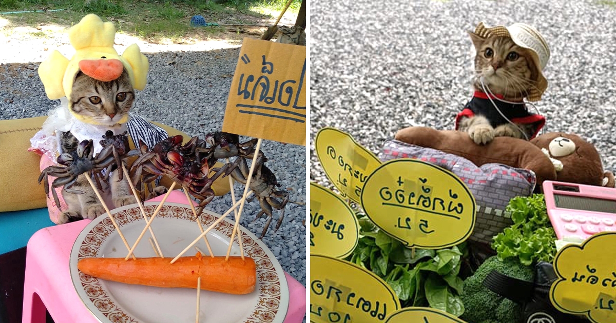 喵老闆路邊擺攤! 「手手放上面」端莊模樣成網紅:人客路過不看一下嘛?