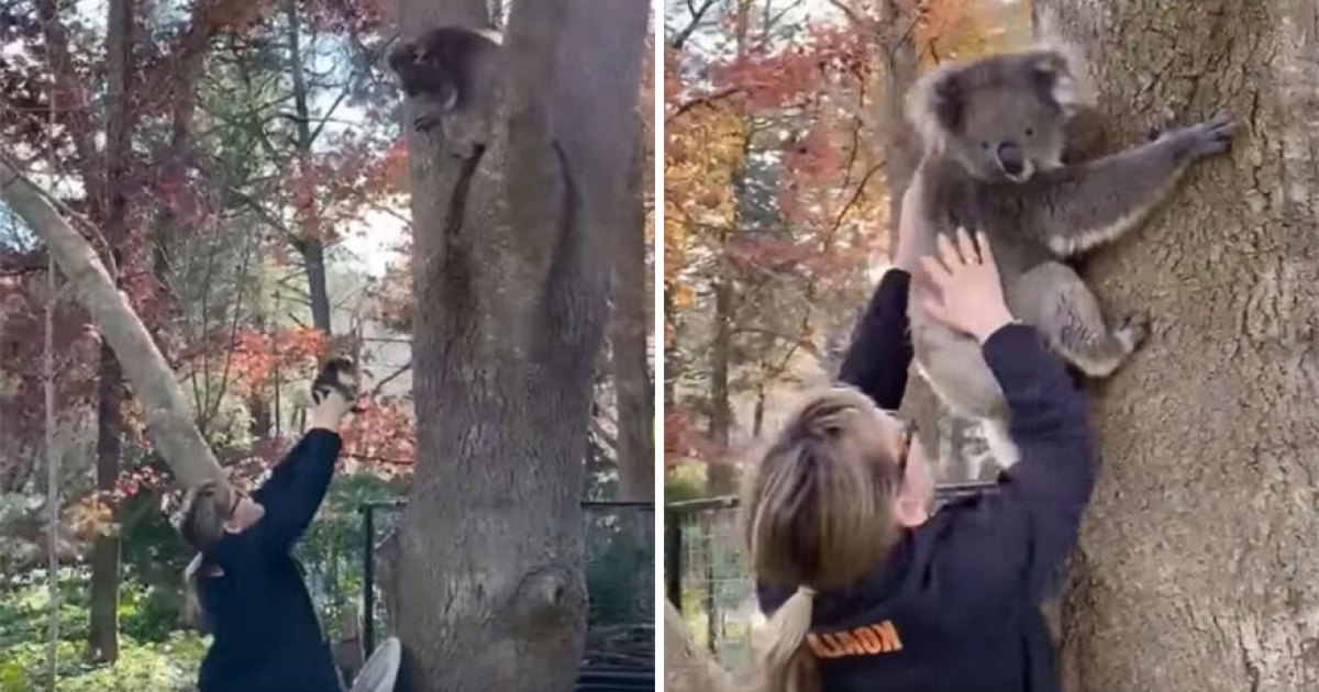 無尾熊寶寶掉樹! 有經驗志工馬上「獅子王式高舉」安慰:賣驚寶寶底加啦~