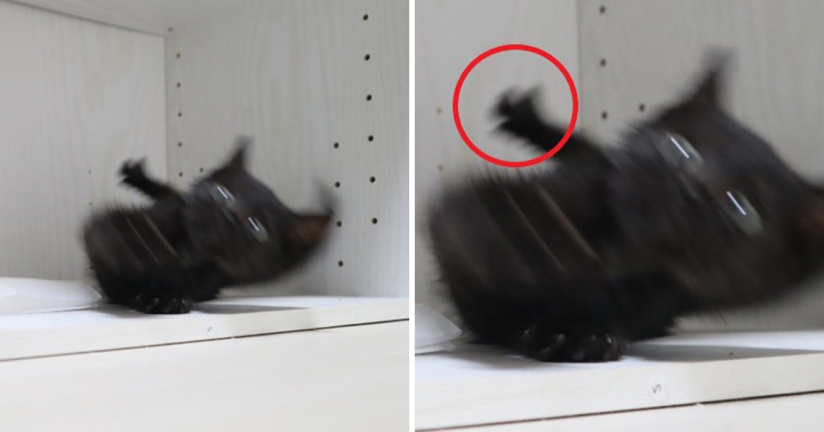 小黑貓玩耍跌倒!當場詮釋「興奮到模糊」 網笑:還不忘開一下掌花
