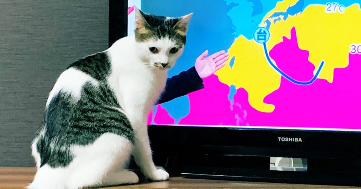 萌喵化身氣象主播! 報新聞還專業「伸手收講解」:接下來是颱風的動向喵~