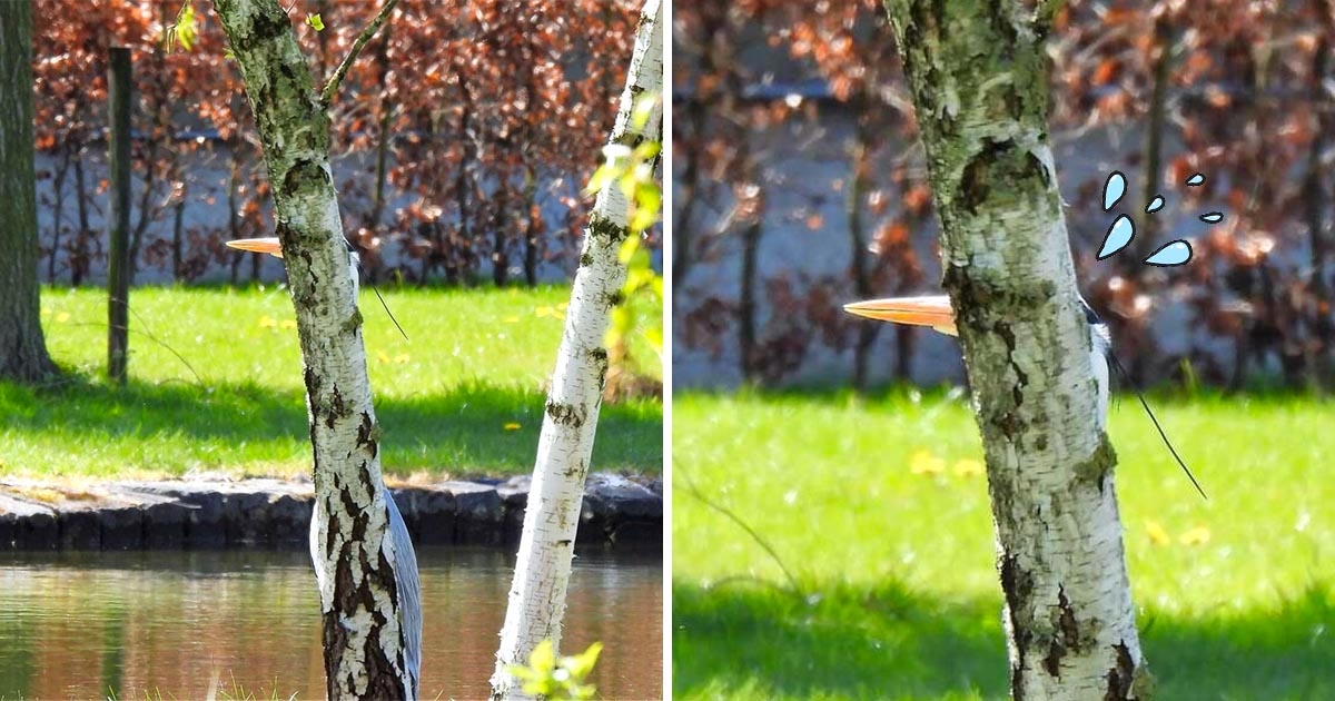野生的大鳥!牠躲樹後不給拍 網看到「嘴嘴」笑:露餡了啦~