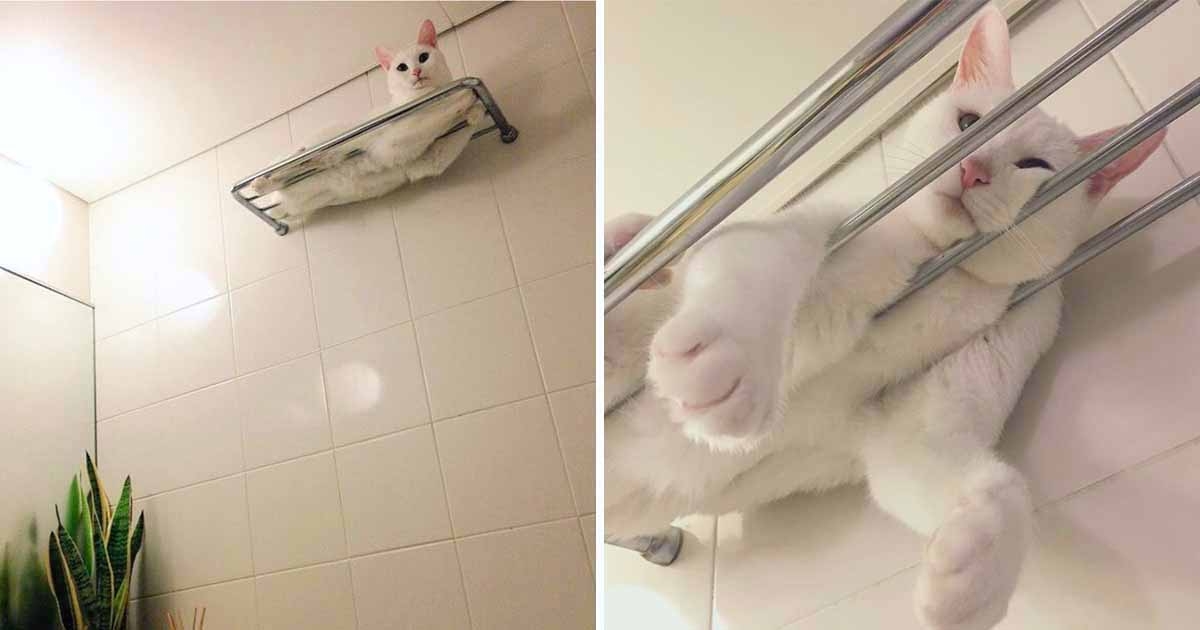 浴室抬頭見架上多一條「白毛巾」! 從縫隙「完美溢出」網笑:好像不吸水~