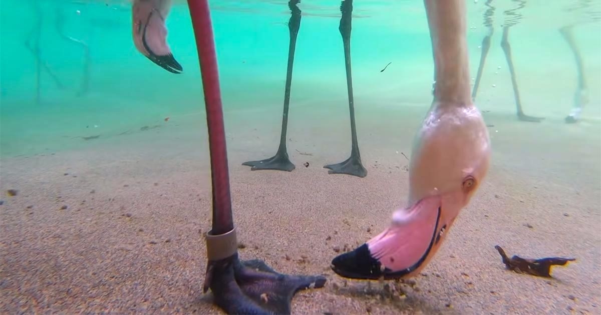 倒頭栽吃飯法!罕見「紅鶴覓食」曝光 網熱議:看得脖子好痠~