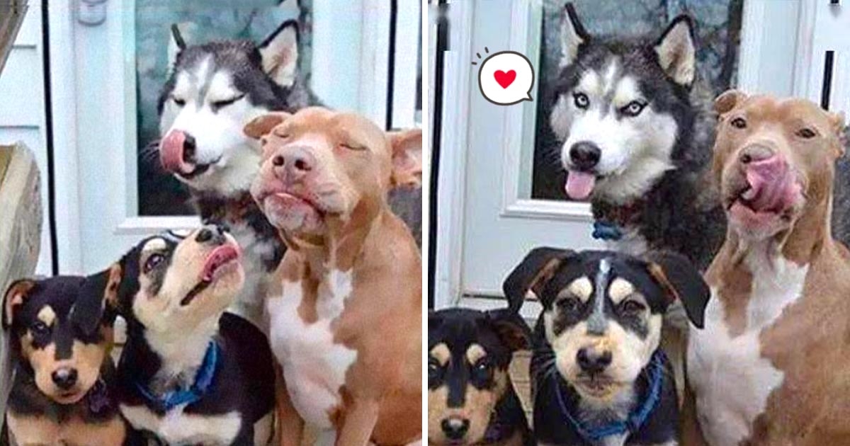 心機汪!主人給4汪拍合照 月月「伸舌頭搶鏡」比特犬一招比下去