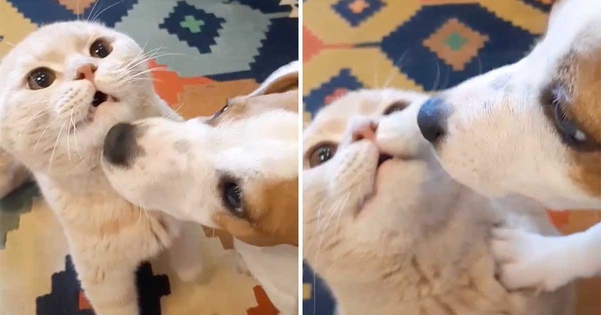 碎嘴貓「喵喵叫」罵不停! 總裁狗上前「霸道甜吻」:泥安靜一下啦~