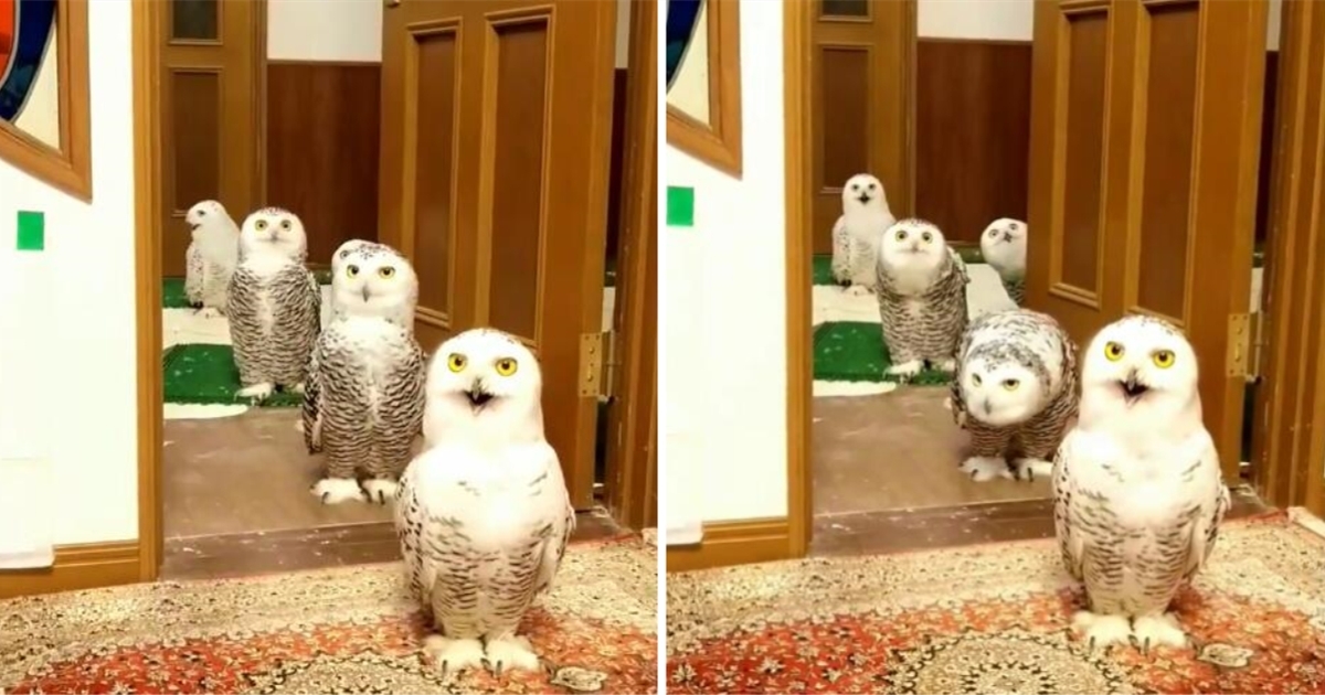 人家等得好著急! 雪鴞「乖巧排隊」想進客廳玩 不停探頭求入場萌翻