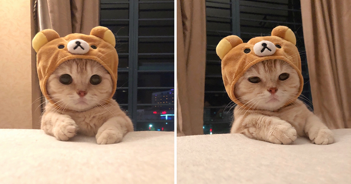 小橘貓戴「拉拉熊帽」超配合賣萌 大眼累了變囧臉:玩我玩夠沒?