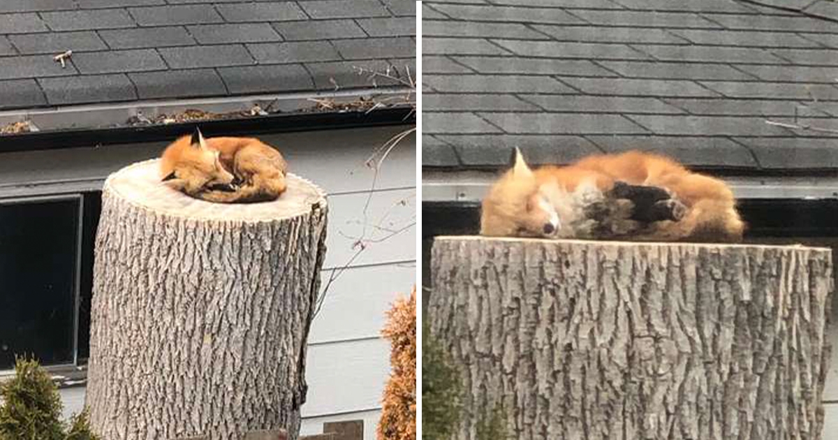 完全當自己家!萌狐不請自來「樹樁上酣睡」 翻身看到庭院主人:借人家躺一下咩~