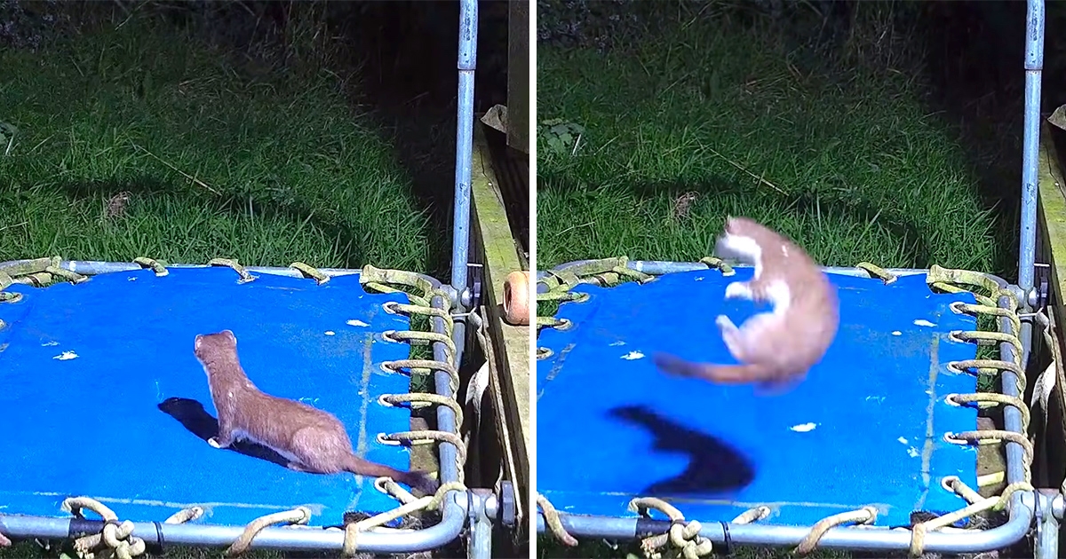 動物小孩也愛玩!後院裝彈翻床 巧錄「神秘嬌客」溜進來享受:ㄉㄨㄞ腰腰~