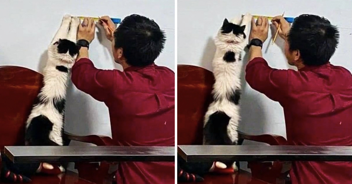家庭小幫手!爸拿捲尺做標記 黑白貓「伸手手幫扶」網羨:孩子好貼心♡