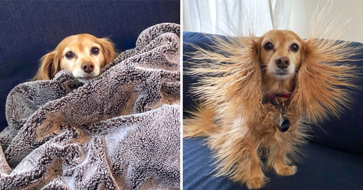 毯毯靜電!可卡犬起床秒變「呆萌傘蜥蜴」 網笑噴:走路自帶有風~
