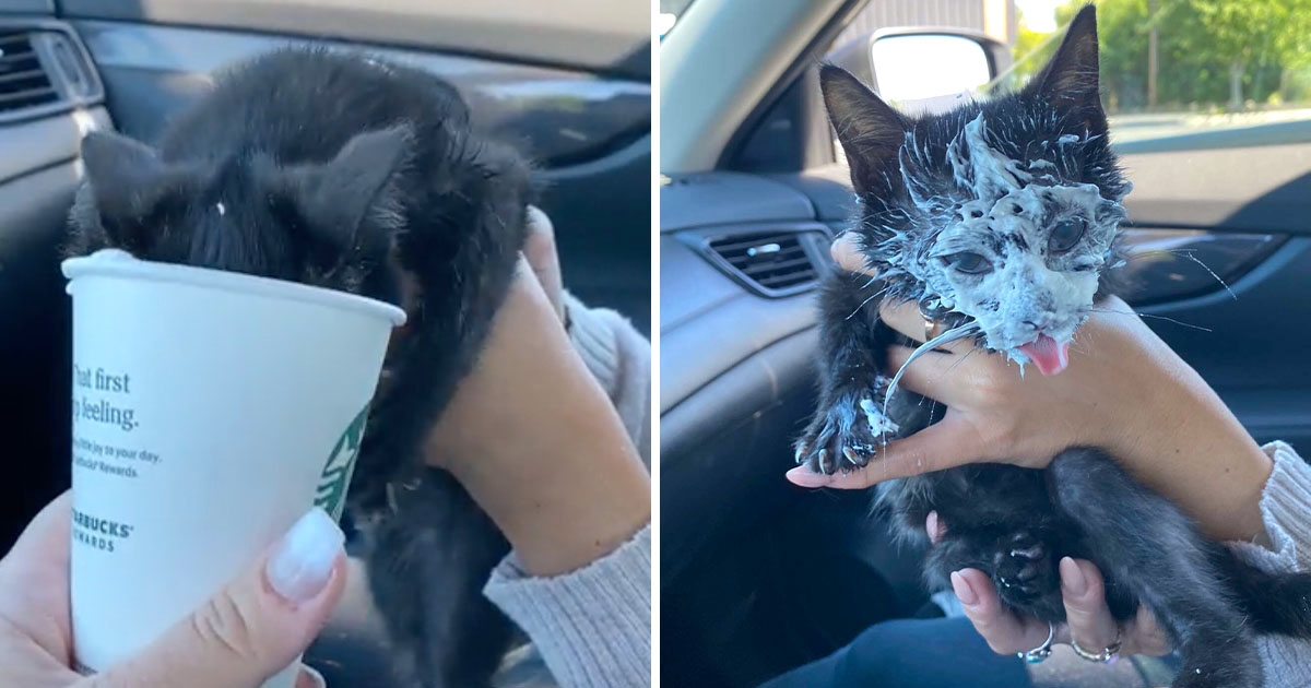 喵生美味!小奶貓初次「吃到星冰樂」太興奮 抬頭秒變「花臉喵」:太好吃了啦~