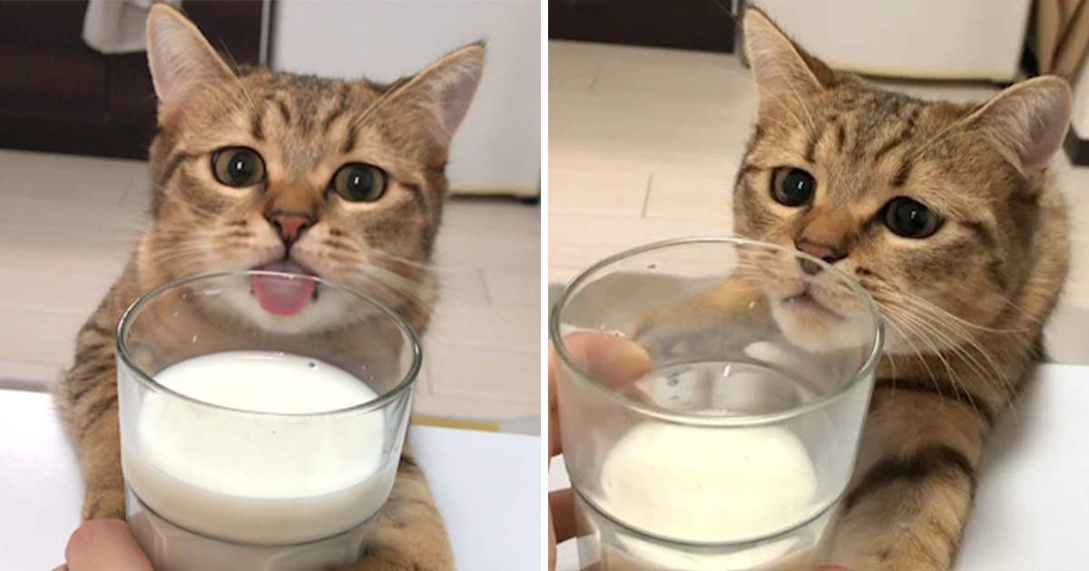 吃貨喵太想喝牛奶!竟「雙手抱杯」吐舌不放 網友凍未條:給牠啦♡